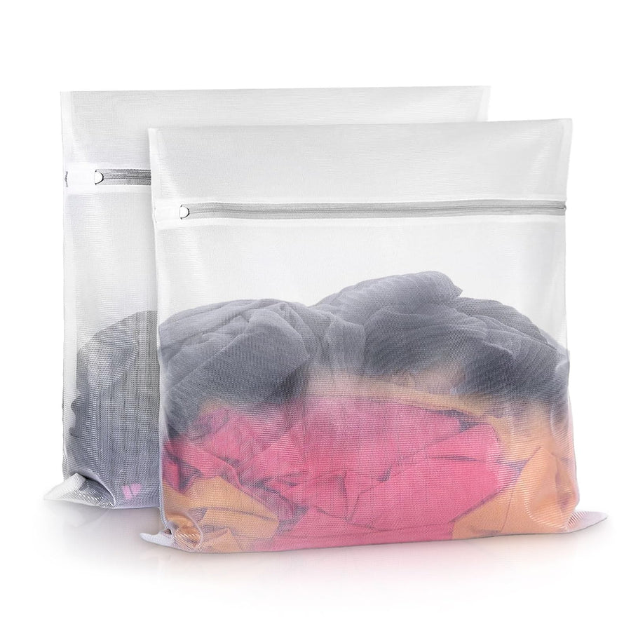 2 Pcs Large Clothing Washing Bags, 23 x 23 Inches Polyester Lingerie Laundry Bag for Washing Machine, Mesh Laundry Bags for Bras, Underwear, Sweaters, Socks, Stocking, Cotton Clothes, Sheet (Gray)