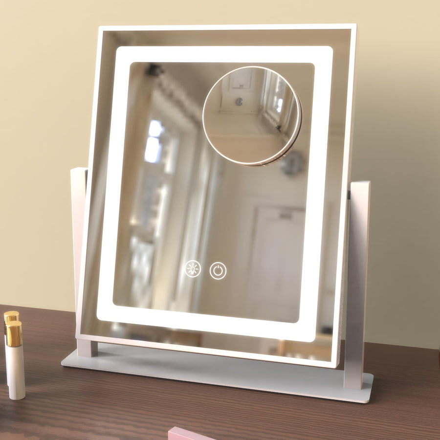 Vanity Mirror with Lights,Lighted Vanity Mirror with Dimmable LED Lights,3 Color Lighting Modes, Detachable 5X Magnification, 360°Ratation, 9.8" L x 11.8" W