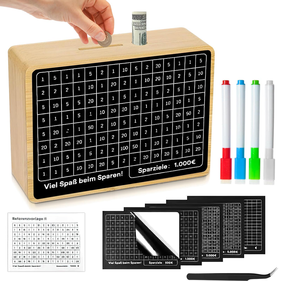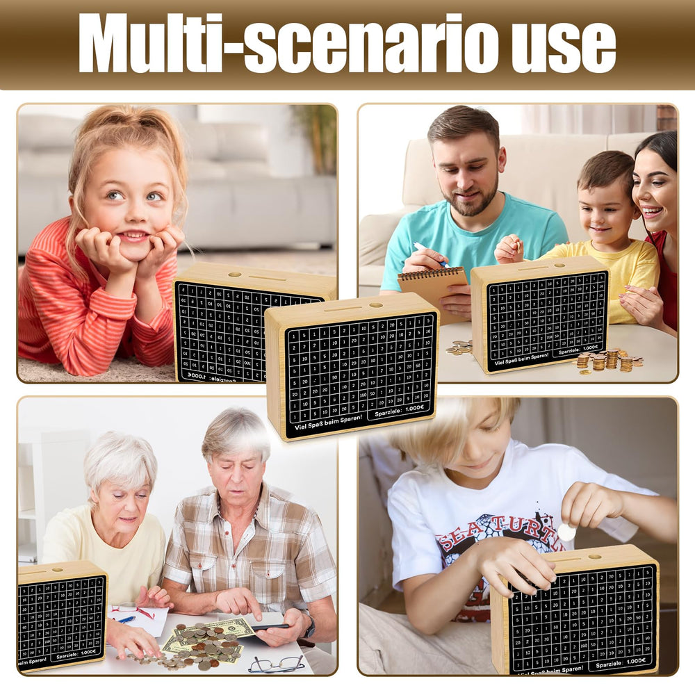 Wooden Piggy Bank Money Box, Money Counter Piggy Bank, Wooden Cash Savings Box for $1000 Target Money Saving Challenge