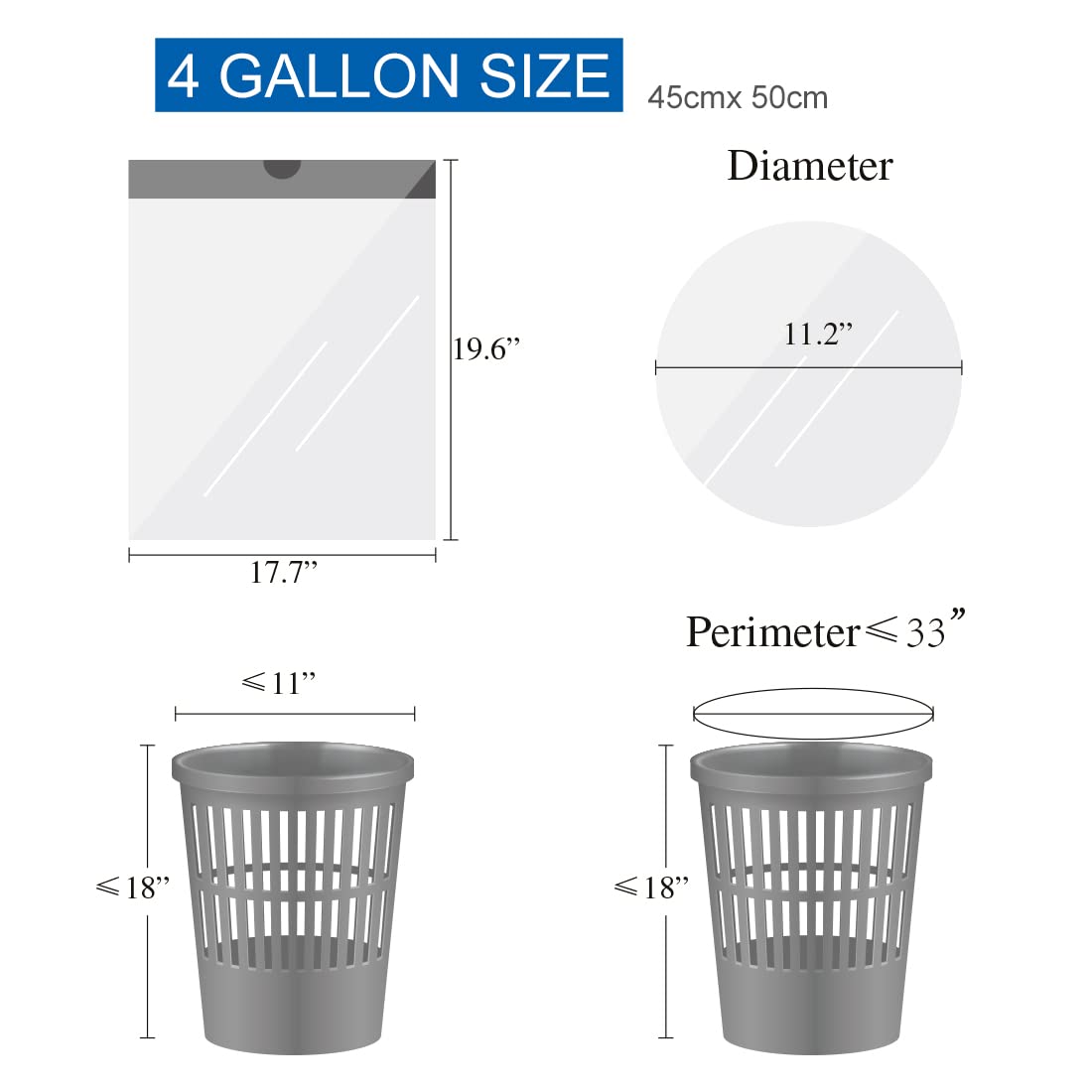• ✅ Product Packaging: 120 count 3- 4 Gallon Trash bags, 17.7 inches * 19.6 inches; no odor, no harm to the body, safe to use. It can also be used to store bulky clothes, blankets, toys and more household items.