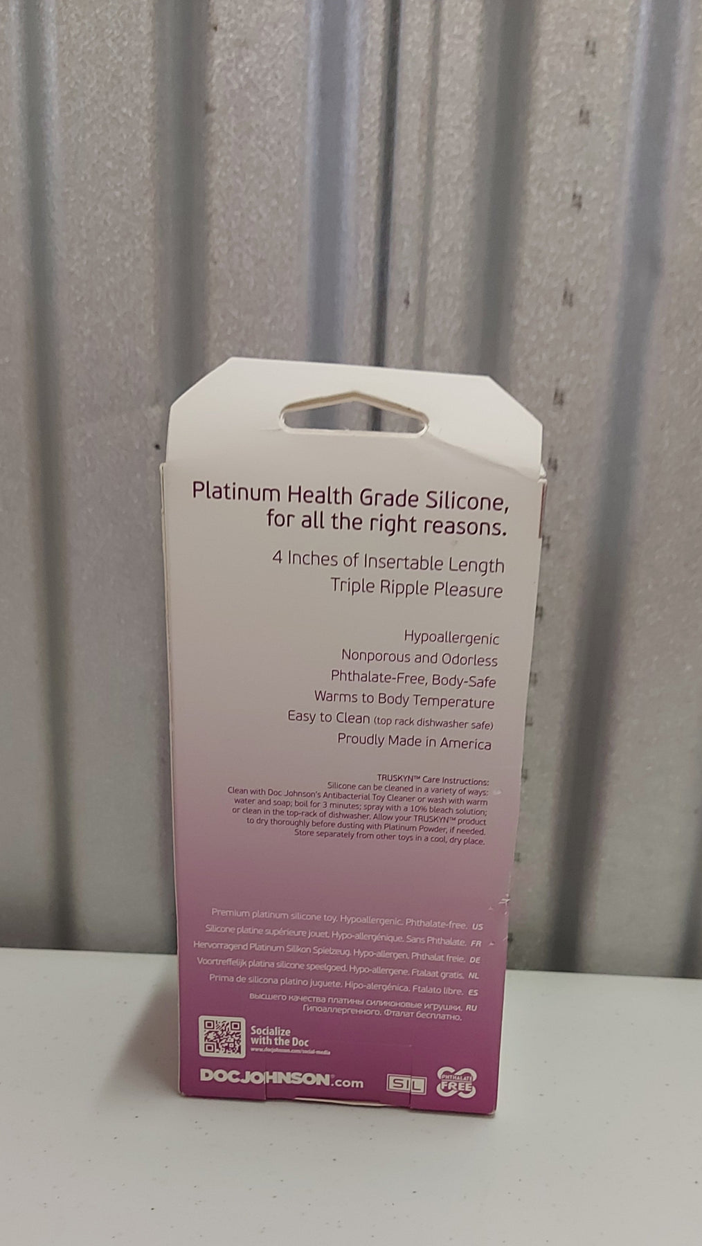 TRUSKYN™Care Instructions: Silicone can be cleaned in a variety of ways. Clean with Doc Johnson’s Antibacterial Toy Cleaner or wash with warm water and soap, boil for 3 minutes, spray with a 10% bleach solution, or clean in the top rack of dishwasher. Allow your TRUSKYN™ product to dry thoroughly before dusting with Platinum Powder, if needed. Store separately from other toys in a cool, dry place. WARNING: Do not use oil or mineral oil or based products as it may cause deterioration. Ideally use with water-based lubricants/glides. Do not attempt to warm this product in a microwave or conventional oven.