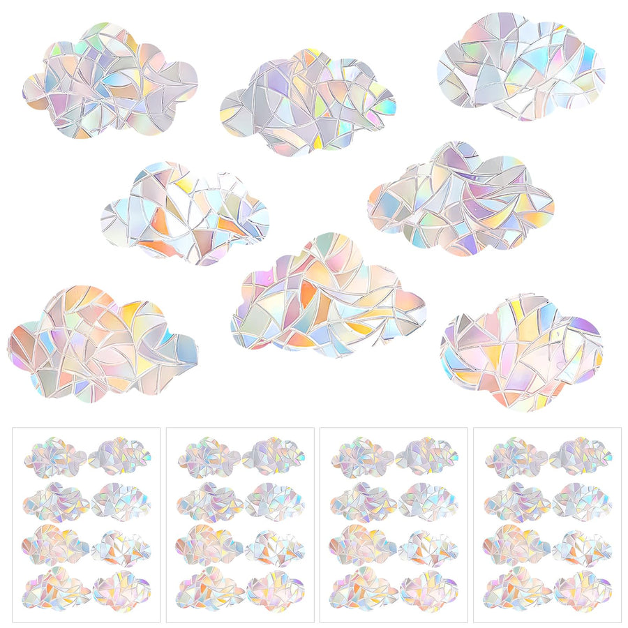 4 Sheets Anti Collision Window Clings, Window Decals to Prevent Bird Strikes Prism Pattern Window Stickers for Birds Alert Stickers to Protect Wild Birds Against Glass (Clouds)