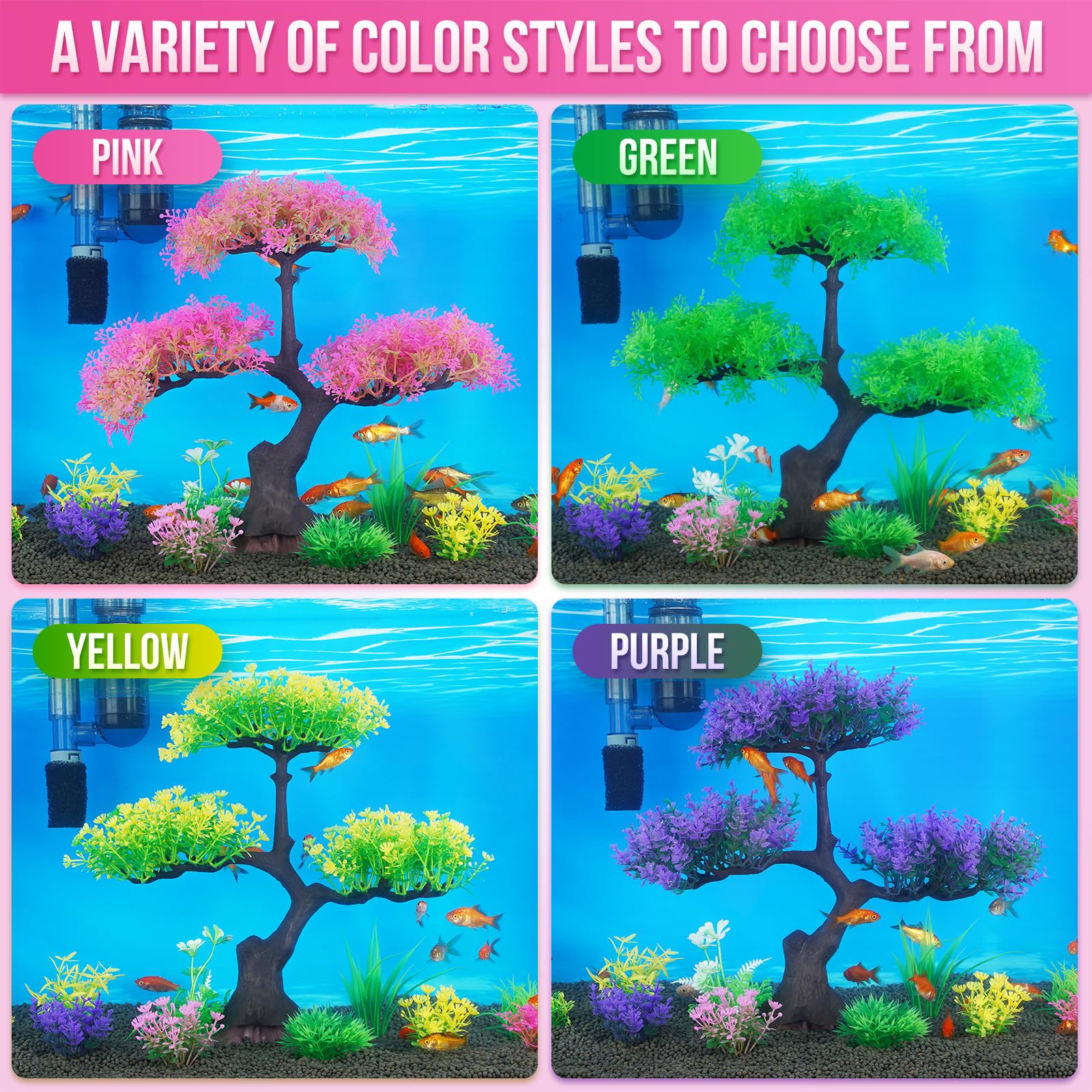 Aquarium Plastic Plants Artificial Decorations, Large Fish Tank Fake Tree Plant Decor Ornaments Accessories (Pink)