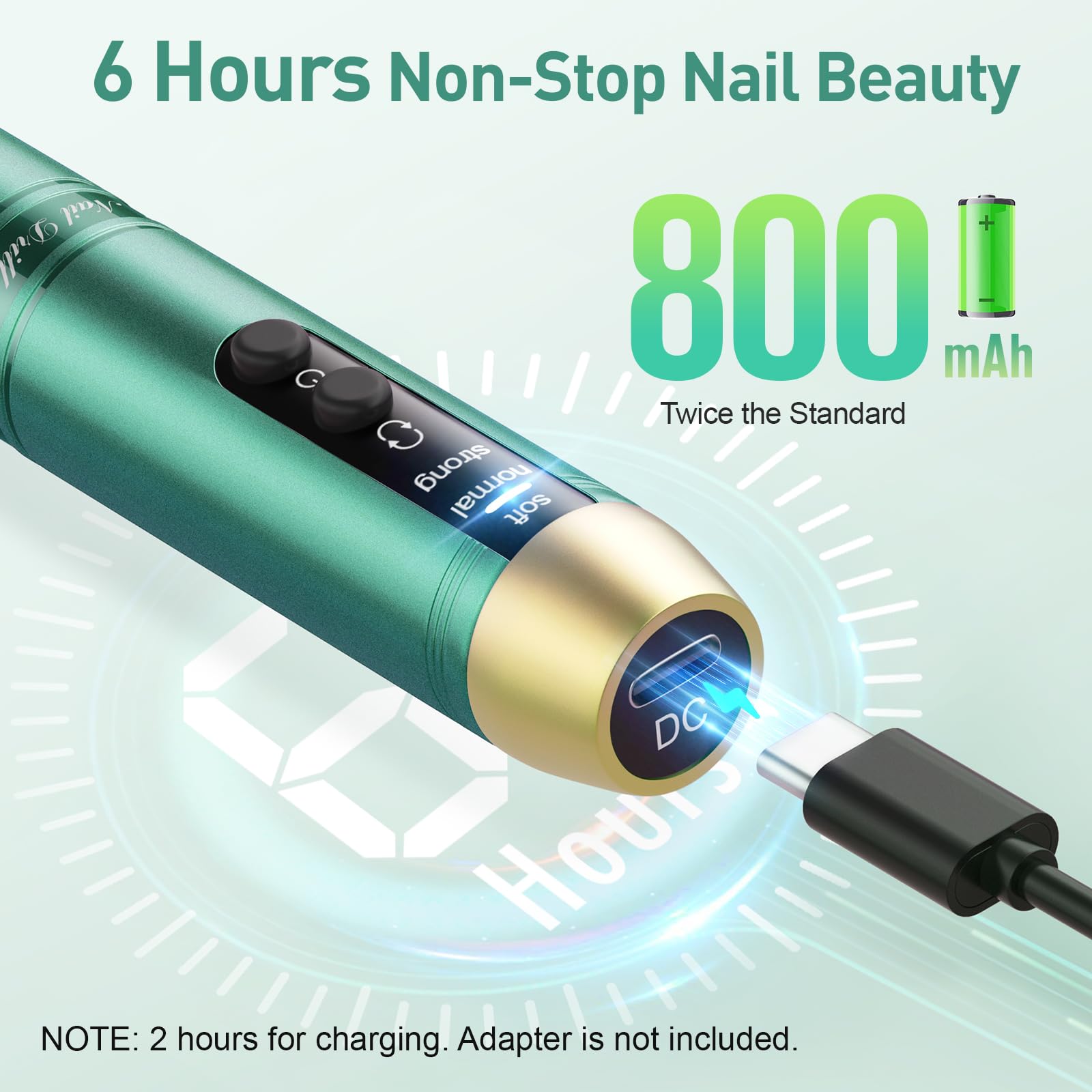 - Professional & Rechargeable: Electric nail drill adopts large-capacity battery. Just 2 hours for nail art, with a usage time of up to 6-8 hours. Everything is carefully designed to provide customers with a better nail enhancement experience