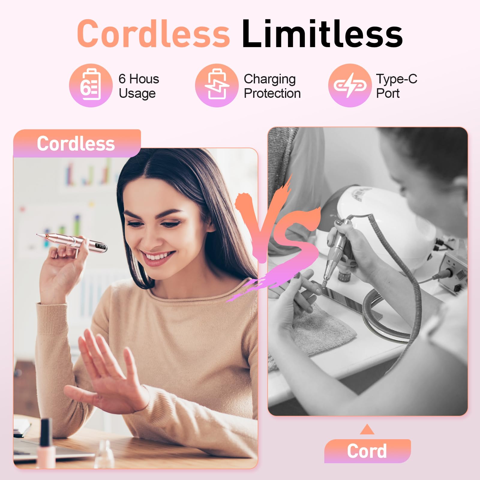 • 【Cordless & Portable Nail Drill】Nail drill adopts a pen-shaped design, providing an excellent comfortable grip experience. Compared to other nail drills, the cordless design is more portable and lightweight, allowing you to easily improve your nail skills. Beloving electric nail drill supports charging while using