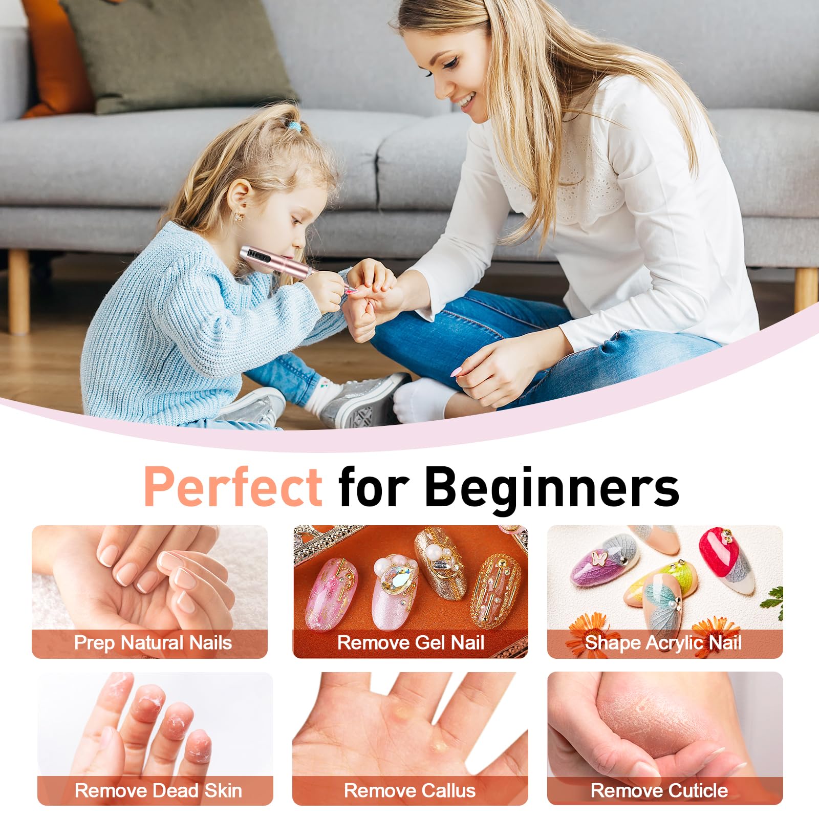 • 【Multi-functional Electric Nail Drill】Nail drill suitable for removing gel nail polish, shaping acrylic nails, polishing nail, removing callus, thick nail, dead skin & dip powder nails, manicure & pedicure and more. Suitable for home DIY, nail school, nail salon manicure & pedicure. Everything is carefully designed to provide customers with a better nail enhancement experience