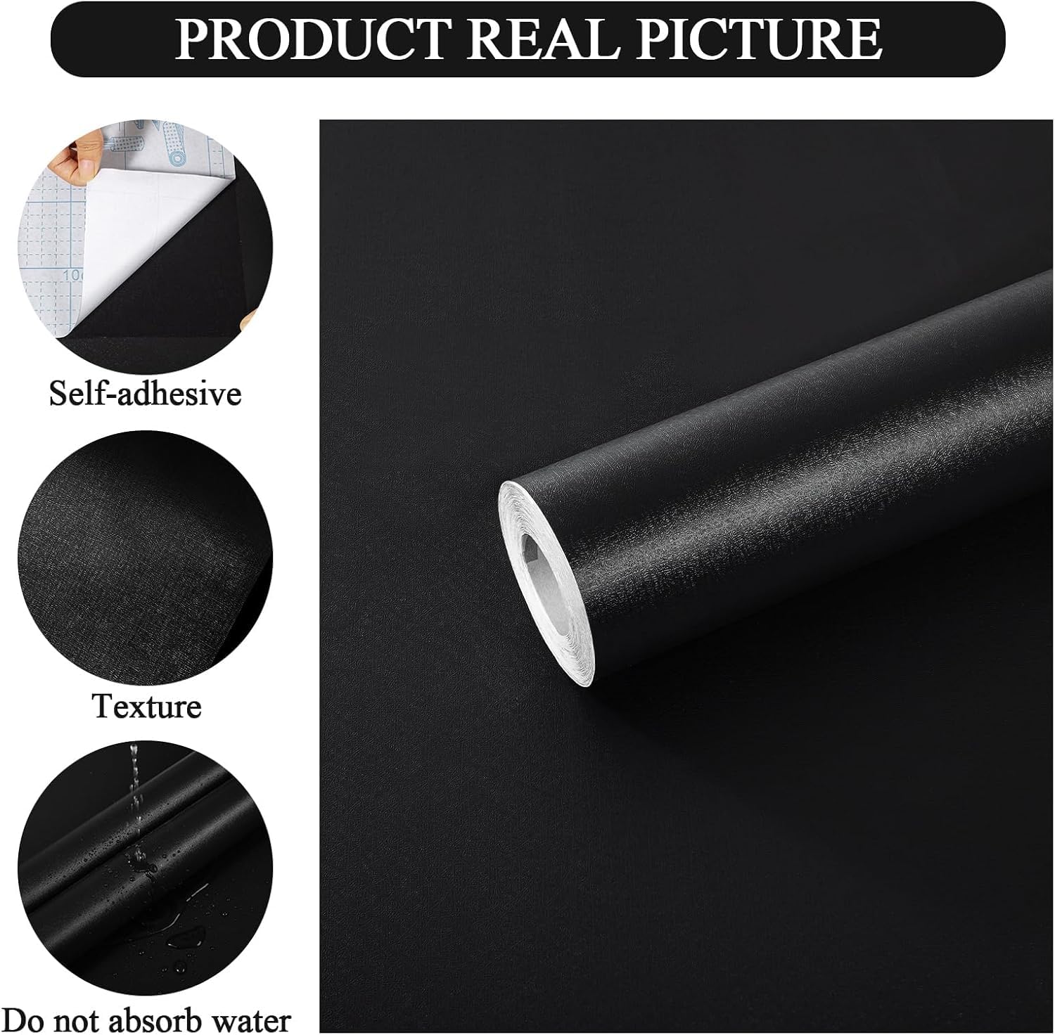 - Material: Black self-adhesive wallpaper is made of high quality thickened PVC material, thick and durable, the surface of the wallpaper has a rough texture, it feels very texty, the back is equipped with environmental friendly self-adhesive, white wallpaper is waterproof and oil-proof, easy to clean, just wipe gently with wet paper towels, one step can easily clean the surface