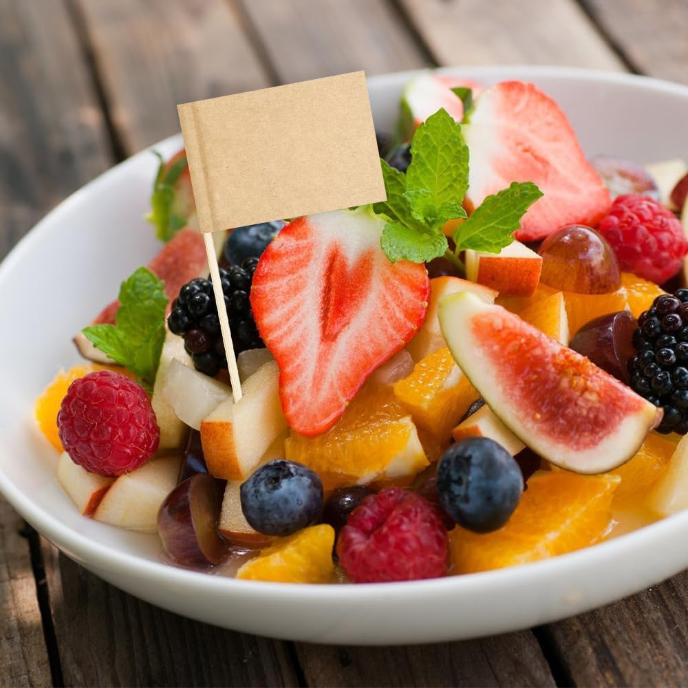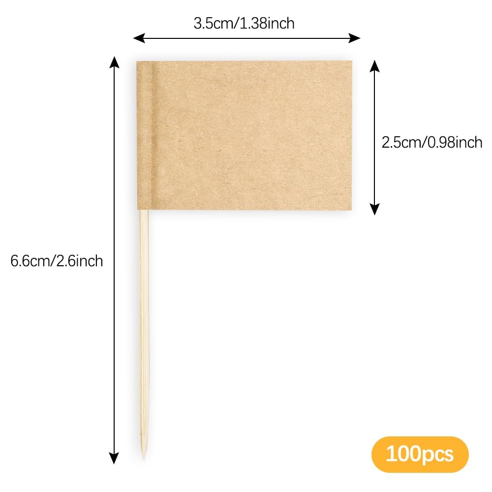 - DIYable Blank Toothpick Flags: 100 pieces blank toothpick flags cheese markers can be DIYed freely by yourself in the blank space on the top, designing your favorite pattern and writing the desired words. You can use the labels for food at party as food signs for buffet, toothpicks for charcuterie board, reusable toothpicks for food, custom cupcake toppers, charcuterie utensils, cocktail toothpicks, food labels, food markers, cupcake sticks, cocktail sticks, cheese markers signs.fancy toothpicks