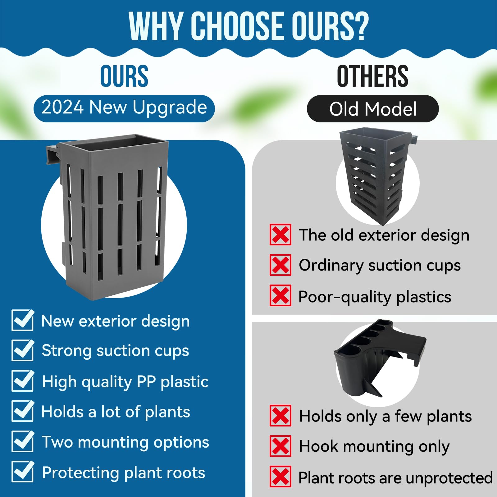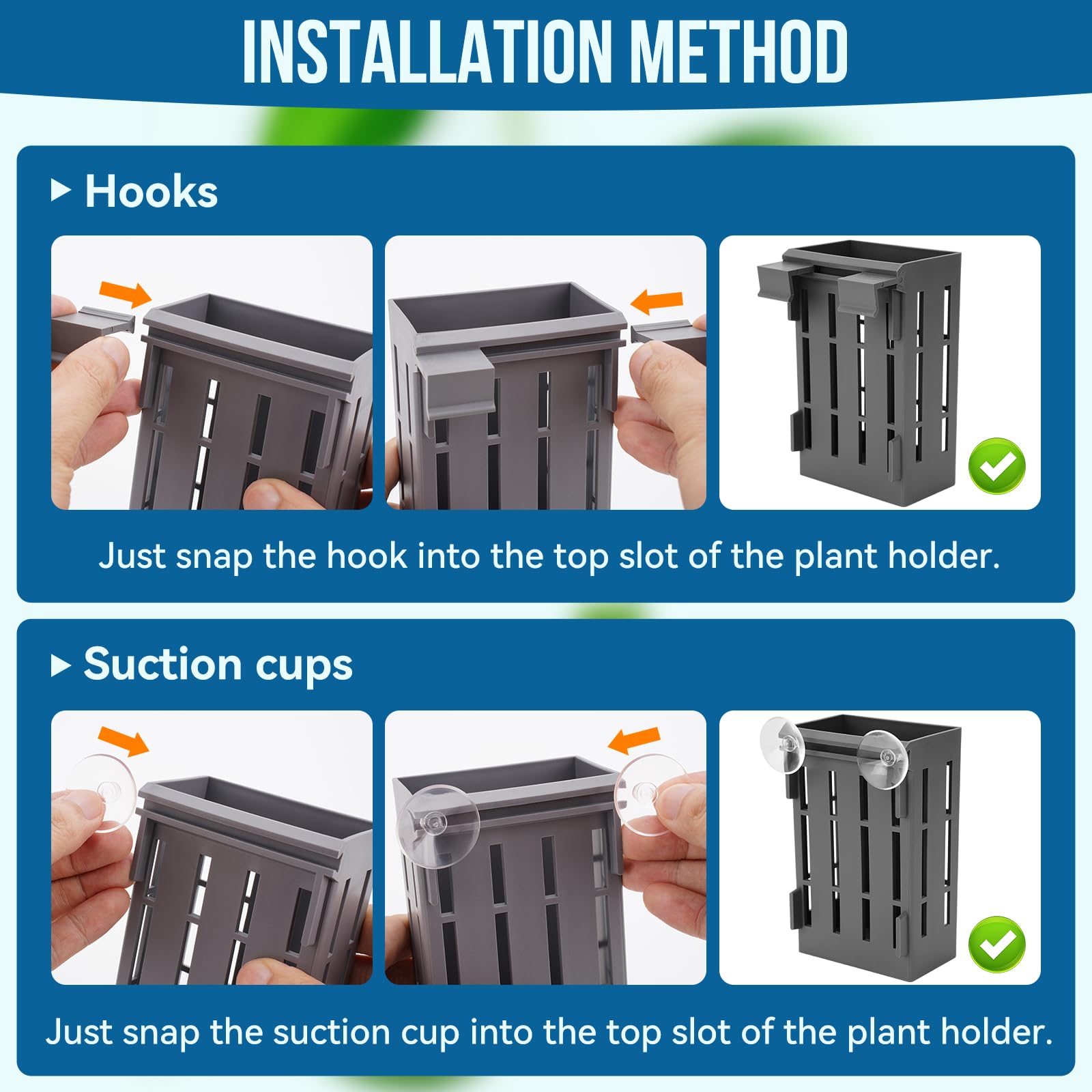 - 🍀For All Your Needs🍀 - This aquarium plant holder is uniquely designed and easy to use. It can be used in two ways, it can be hung stably on the glass edge of various aquariums (glass thickness is less than 0.8 inch/2 cm) or it can be attached to the aquarium glass by mounting suction cups. The planting area is larger, prettier and more stable than other types of aquarium plant holders. It is perfect for pothos, bamboo, lotus, daffodils, water poppies and more semi- or fully aquatic plants.