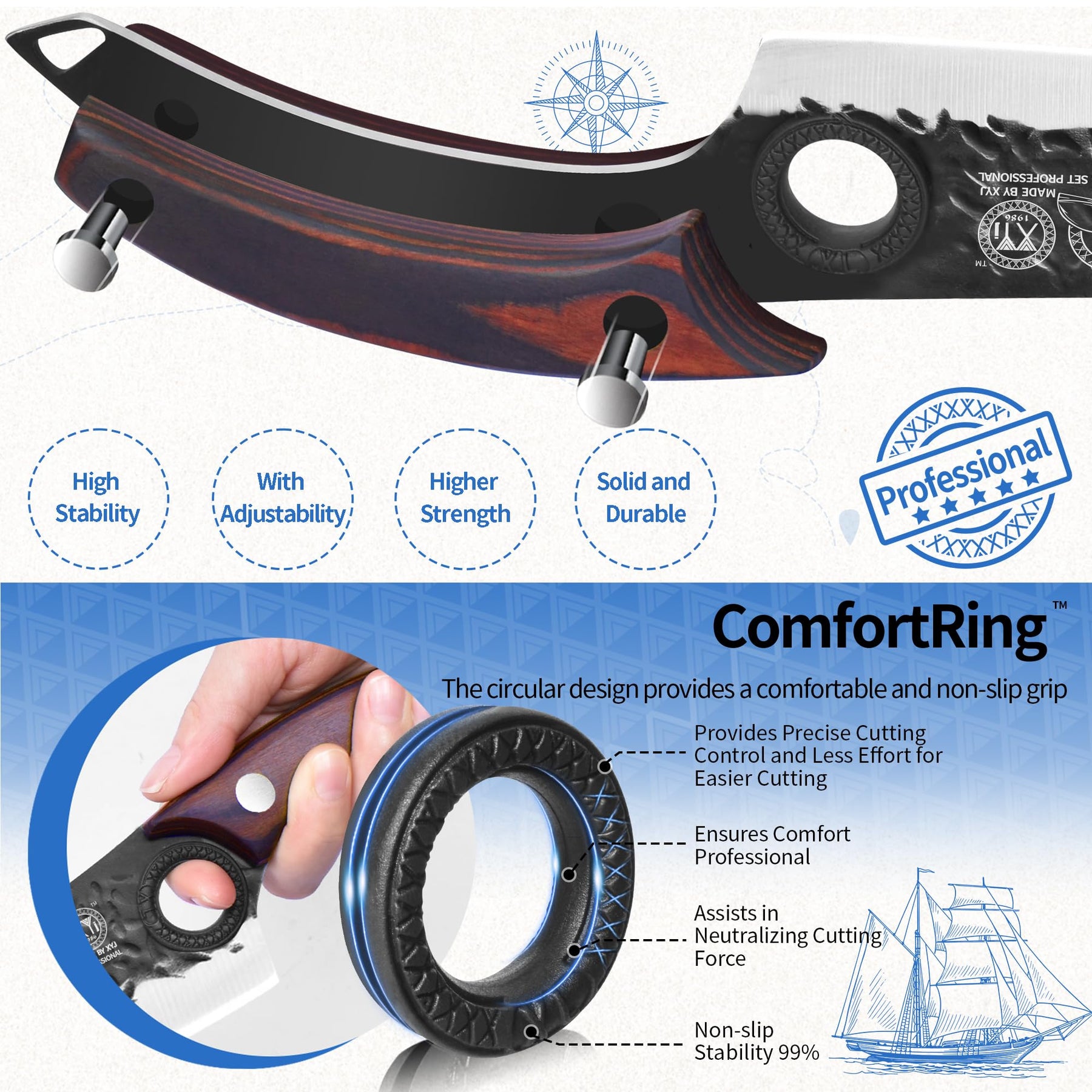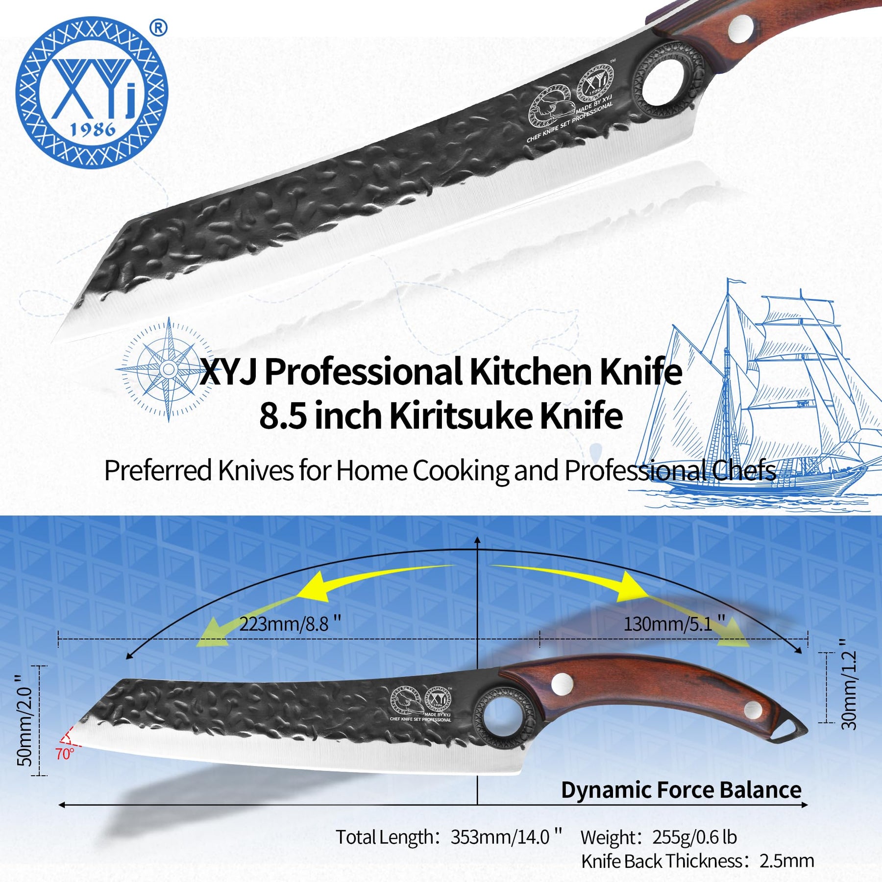 XYJ Kitchen Knife, High Carbon Steel Hand Forged Japanese Chef Knife for Meat Cutting, Cleaver, Cooking Knife with Finger Hole Design, Knife with Sheath, Full Tang, Ergonomic Handle